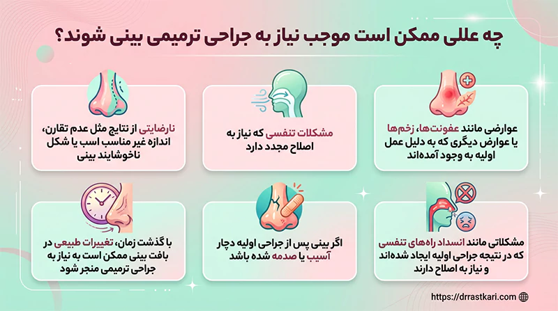 چه عللی ممکن است موجب نیاز به جراحی ترمیمی بینی شوند؟