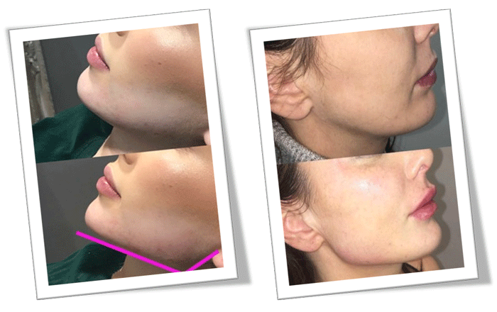بعد از تزریق این فیلر یا ژل ها در فک، یک شیپ V شکل در صورت که باعث ایجاد کشیدگی معینی می شود، صورتی به نسبت کشیده و چانه هم زاویه ای بین 11 تا 11.5 درجه با بینی را تشکیل می دهد.
